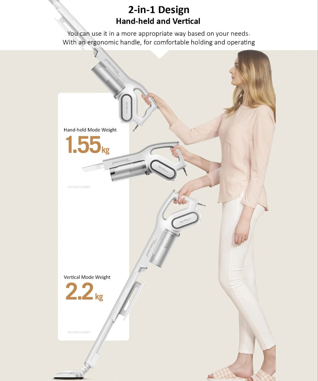جارو برقی Deerma DX700 بسیار سبک و جمع و جور با ظاهری زیبا. از ویژگی اصلی این محصول طراحی دو در یک این جارو دستی می باشد یعنی این کالا از دو جارو برقی مجزا ساخته شده است و به صورت دو منظوره یعنی هم جارو دستی هم معمولی میتوان از آن استفاده کرد .این جارو از موتور قدرتمند 600 واتی ساخته شده است و قدرت مکش این موتور حداکثر 15000 پاسکال است که برای نظافت منزل بسیار مناسب می باشد.این محصول با برق 220ولت کار میکند.این جارو برقی دستی از یک سیستم فیلتراسیون سه لایه تعبیه شده است که لایه اول شامل فیلتر گرد و غبار است . لایه دوم شامل فیلتر نخی با قابلیت جذب گرد و غبار و ذرات بسیار ریز است لایه سوم با فیلتری به هپا (HEPA) هوا را به طور کامل از ذرات آلاینده پاک می سازد . مخزن این جارو برقی از ظرفیت 750 میلی لیتری تعبیه شده که به دلیل وجود سه لایه فیلتر که در قسمت بالا به آن اشاره شد مخزن خیلی سریع پر نمیشود . جنس این مخزن پلاستیک شفاف است که باعث می شود فضای درون مخزن را ببینند . بعد نصب مخزن نگران کنده شدن یا لق زدن آن نباشید زیرا این دستگاه دارای ضامن های سیلیکونی است که مانع از این اتفاق میشود .
